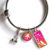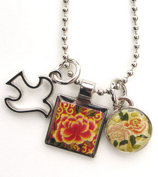 This charm necklace designed with beautiful Chinese peony flowers. The charms hang on a 36” ball chain that you can cut, double or wrap and the hand poured laquer finish will keep your charms looking new for ages. Matching earrings, bangle and key ring are available.