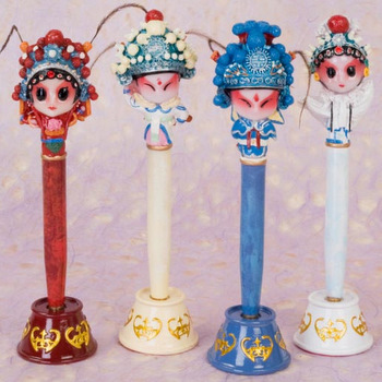 These unique ballpoint pen feature Beijing opera figures -- Qingyi (female) and Wusheng (male). This is not only a great pen to write with, but also a great decoration for your writing desk! Each pen comes in a gift paper box and a stand. Price is for each pen.
