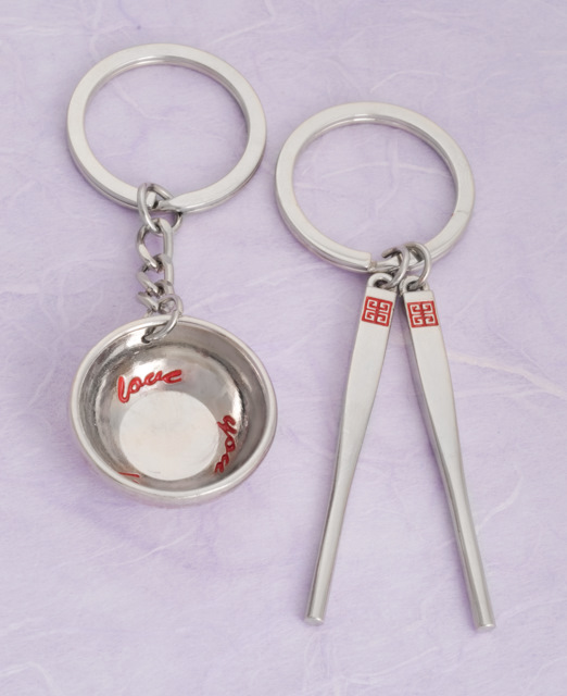 Designed with rice bowls and chopstick, these fun ornaments are sure to be a hit with any set of keys. Liven up your set of keys with a little bit of China. A set of two rice bowls with Chinese characters means "He washes dishes only, doesn't eat" and "She eats only, doesn't wash dishes". Another set of rice bowl and chopstick decorated with eternity pattern. Choose from a set of two rice bowls or rice bowl and chopstick.