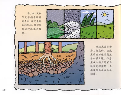 这套从英国A&C BLACK出版公司引进的“体验科学工坊”丛书形象地介绍了我们身边的水、电、化石、宝石的形成过程,以及重力、日出日落、食物链、岩石风化等自然科学常识。在这套书中,你可以搭载航天飞机去太空旅行,体验在没有重力下的生活;你还可以了解云如何形成,雨如何落下,为什么天空中的太阳时而升、时而降,电如何在眨眼之间穿越整个城市……每本书后面还附有三个辅文板块:“更多有意思的知识”是扩展知识板块;“试试看”是动脑动手探究板块;最后一部分是与该书内容有关的“奇闻趣事”,可以称为趣味阅读板块。详细内容请参阅每本书的中英文简介。