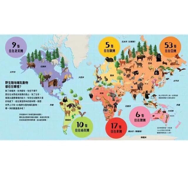 全世界有20,000,000,000,000,000,000 隻以上的動物。要一次想像這麼多動物太難!所以,我們每次只假想100隻動物就好。例如,假想這世界有100隻野生陸地動物,牠們分布在哪裡呢?假想世界上有100隻寵物,各是哪些呢?
