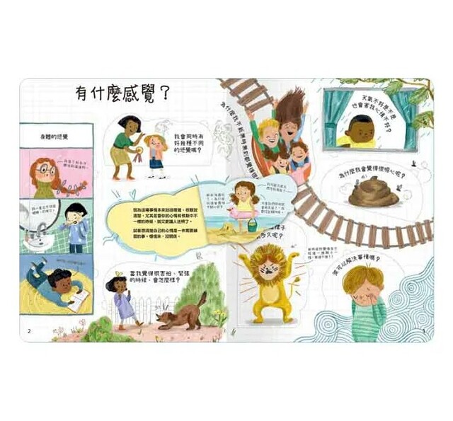 《關於感覺你想知道什麼?》為什麼爸爸媽媽都不懂我的心?爸爸媽媽吵架的時候我又該怎麼辦?天氣不好是不是也會害我心情不好?為什麼我會笑、會生氣、會想咬指甲?哭可以解決事情嗎?睡一覺起來後事情就會變好嗎?