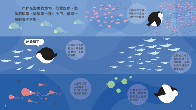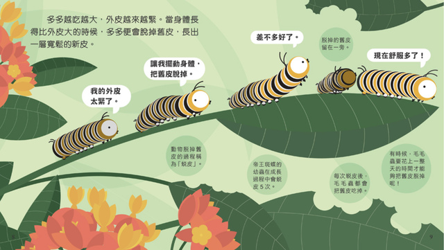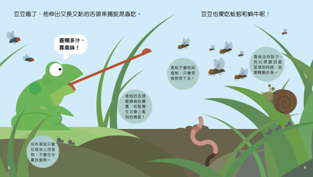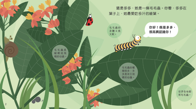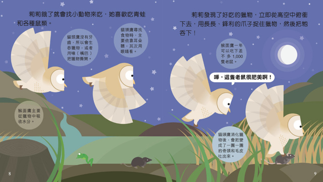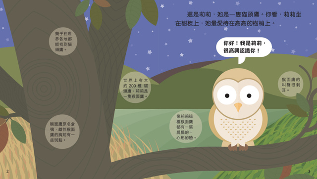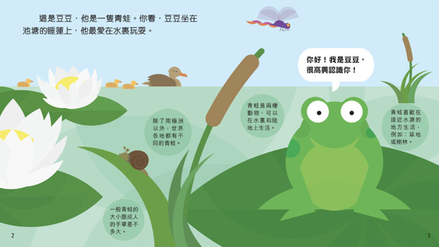 Book Titles: Frog 青蛙豆豆 Caterpillar 毛毛蟲多多 Penguin 企鵝胖胖 Owl 貓頭鷹莉莉