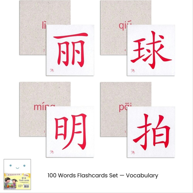 These are the companion flash cards for the series of Reading Program 100 Words, 200 Words, 300 & 400 Words, 500 - 800 Words and 900 - 1200 Words. These are designed to help children read and identify words, increase their vocabulary, and strengthen their memory. Each box contains individual Chinese characters. Behind each flashcard there is Hanyu Pinyin pronunciation given. Included is a leaflet containing 50 uses of the flashcards which include 3 blank ones, which can be written on with a whiteboard market pen and erased easily. Get Audio CDs and CD-ROMs from same series too. (100 Words: 103 cards, 200 Words: 112 cards, 300 Words: 89 cards, 400 Words: 89 cards, 500 Words: 91 cards, 600 Words: 93 cards, 700 Words: 99 cards, 800 Words: 105 cards, 900 Words: 94 cards, 1000 Words: 106 cards, 1100 Words: 94 cards, 1200 Words: 93 cards.