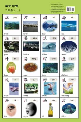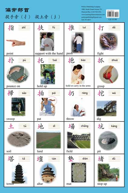 Each poster in this beautifully-produced set contains twenty pictures of common radicals familiar to most students, complete with their English and Chinese names and Pinyin. Seeing the pictorial illustrations and the Chinese words together will help students visualize the words they are learning and speed up their learning. The radicals on the posters are grouped together by their natural classification. Each poster is printed on laminated heavy-stock paper which lends itself to easy folding and carrying and is protected from tearing and scratching.