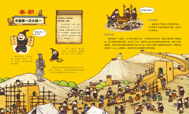 这是一本给孩子的历史启蒙书。从上古时期一直讲述到清朝,共21个朝代。每个朝代采用一个跨页的形式,用简洁风趣的语言和精致有趣的插图,将每一个朝代有别于其他朝代的主要特征展示出来,是一本市场少见的、写给幼儿的历史启蒙绘本。