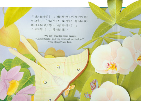 Join Tavi Tiger and her colorful animal friends on their quest to discover the source of the strange sounds echoing through the forest. Tavi Tiger is one book children will want to read again and again. This hardcover pop-up book is in English and Traditional Chinese characters with Zhuyin.