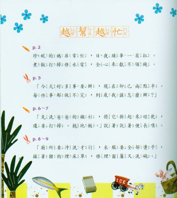 珍妮的媽媽很忙碌,有很多家事要做,珍妮就趁媽媽上街購物時幫她忙,沒想到反而將家裡弄得一團亂。透過這個故事,孩子可以知道如何面對父母不好的情緒。