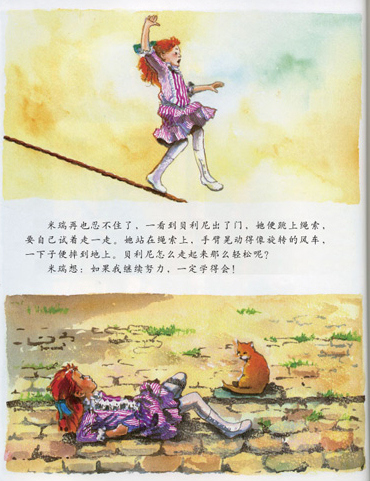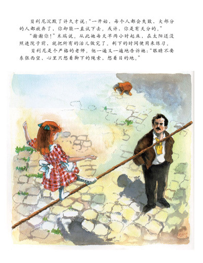 《天空在脚下》内容简介:一天,一个忧伤神秘的陌生人来到寡妇葛戴的小旅馆住了下来,他沉默寡言、独来独往。寡妇葛戴的女儿米瑞无意中看到他在后院练习走钢绳索。聪明勇敢的小米瑞抑制不住心中的好奇,开始和陌生人学习走钢索,进而发现,这个陌生人居然是曾经名噪一时的走钢索明星——贝利尼。然而,在贝利尼的身后竟然有着令其不堪回首的记忆——钢索上的恐惧感。于是,故事在小米瑞与贝利尼相互的关爱与帮助中进一步展开。