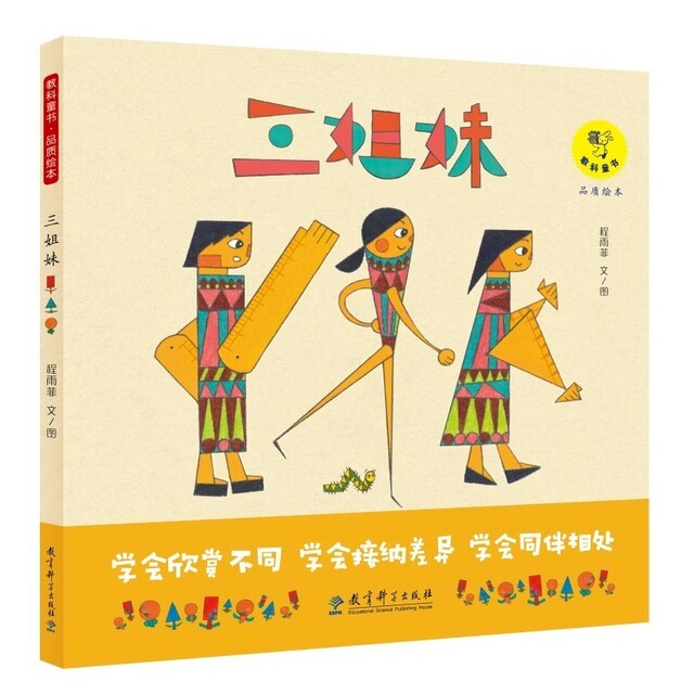 《三姐妹》作者巧妙地将直尺、圆规和三角板化身为三姐妹,将小读者带入一个奇妙的大花园里,为他们讲述了一个引人思考的故事。故事中,大姐直尺、二姐圆规和妹妹三角板各自认为自己种的长方形、圆形和三角形的花是美的,并因此发生了激烈的争执,发展到筑起高墙谁也不肯理谁,结果她们却越来越不快乐。变成蝴蝶的毛毛虫像光一样启发了三姐妹,在它的帮助下,三姐妹认识到“方有方的美,圆有圆的妙,三角形有三角形的俏。多种美丽并存,世界才会更加丰富多彩”。