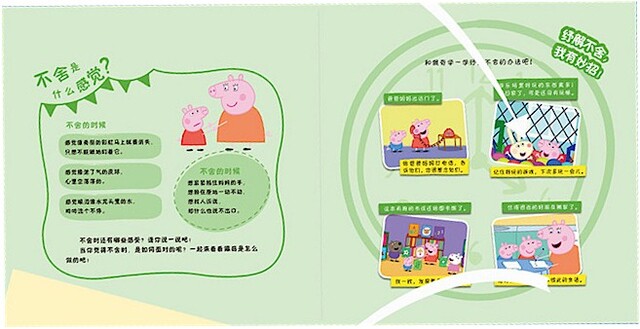 《我的堂姐克洛伊》:堂姐克洛伊来了,佩奇、乔治和克洛伊一起玩起了游戏。游戏过程中佩奇不太开心,她感到很委屈。故事的最后,佩奇和大家一起玩起了最爱的跳泥坑游戏,她的心情好多了。本书将帮助小朋友正确认识“委屈”这种情绪,并学会面对的方法。