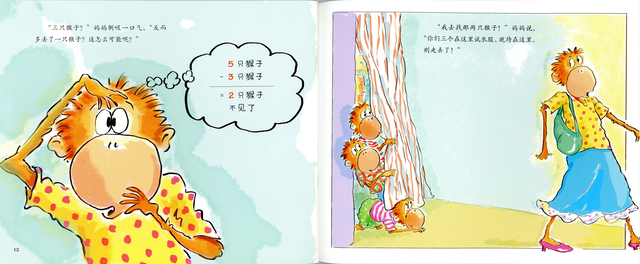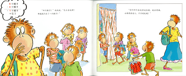 “五只猴子”共10册,包括《五只猴子床上跳》《五只猴子坐树上》《五只猴子烤蛋糕》《五只猴子没事干》《五只猴子卖汽车》《五只猴子捉迷藏》《五只猴子去商场》《五只猴子快点睡》《五只猴子去洗澡》《五只猴子在捣蛋》。五只猴子喜欢捉迷藏、逛商场,晚上睡觉前喜欢读故事、蹦蹦跳,还爱帮妈妈做家务、烤蛋糕……充满活力与动感的五只猴子让小读者们在欢笑中读故事、学算术。请点击查看分册介绍