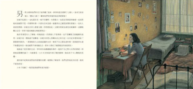 ★这本绘本讲述了《安妮日记》诞生前的故事。真实的文字,精致的图画,但没有涉及二战大屠杀的可怕细节,该书用孩子能理解和接受的方式呈现了一段黑暗历史。
