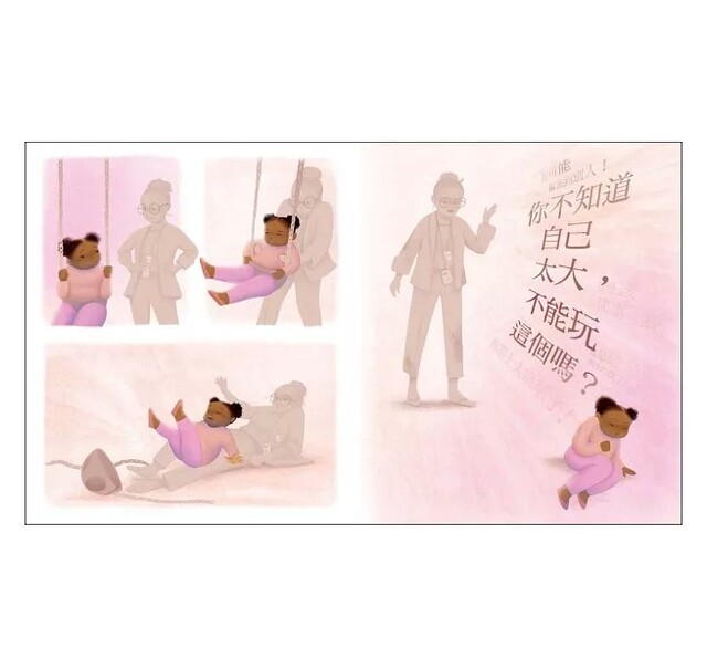 “我是个胖女孩,这有错吗?学校的芭蕾舞表演要开始了,别的女孩子可以演粉色的雏菊和玫瑰,老师却让我演一座乌云大山。当我卡在秋千上,没有人来帮我,有的只是嘲笑:‘你看她,简直像一头鲸鱼一样!’这些话就好像刻在我身上一样,怎么抹也抹不掉。”