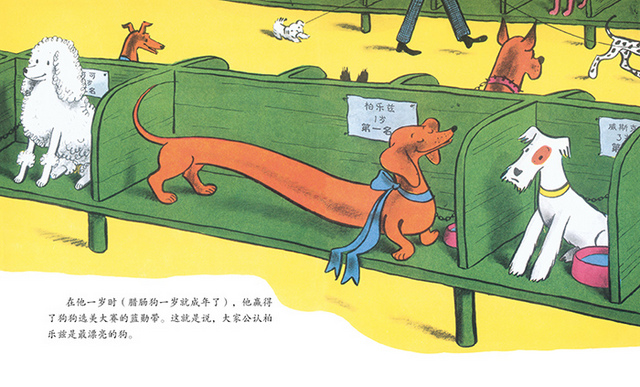 《柏乐兹》:五月的一个清晨,五只小腊肠狗出生了。其中有一只叫柏乐兹。他和别的小狗一起长大。前几个星期,他们的模样看起来都长得差不多。但九个星期后,柏乐兹突然开始长啊长啊长。成年时,柏乐兹成了世界上最长的腊肠狗,他赢得了狗狗选美大赛的蓝勋带!所有的人都喜欢他,所有的狗都羡慕他,除了格丽塔。柏乐兹要如何才能赢得格丽塔的爱呢?