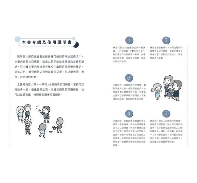 透過45個實例練習,孩子能夠學會在學校中處理好與同學的關係,還要練習如何與長輩打交道。其實,每位大人也曾經歷過這些心理問題,書中的解決方案對成人而言也終身受用。