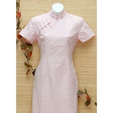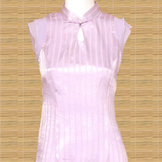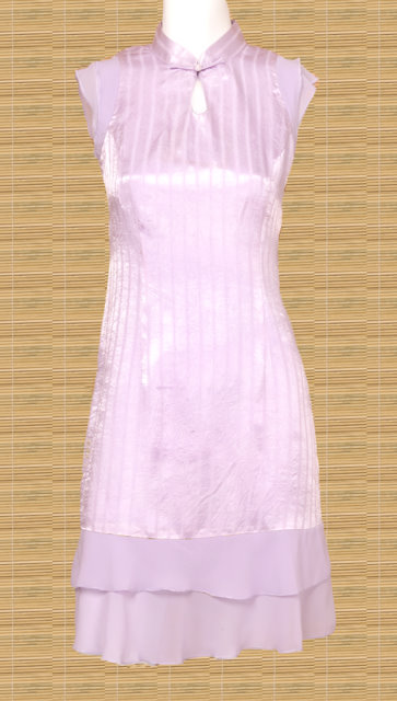 Soft, delicate, and sophisticated, this dress will take you back to a simpler time. The collar features a chinese knot closure design using a pearl. The vertical lines create a slimming effect, while the ruffled sleeves and bottom adds an extra touch of femininity. A perfect dress for casual outings and semi-formal occasions. A back zipper closure and two top snap buttons offers easy and secure fitting.
