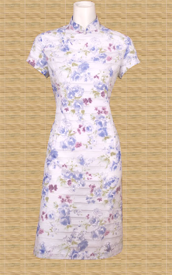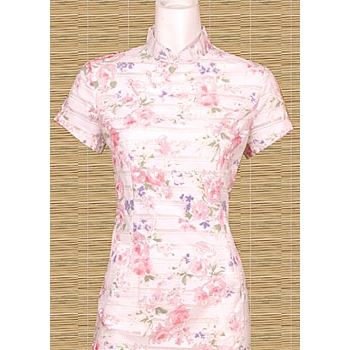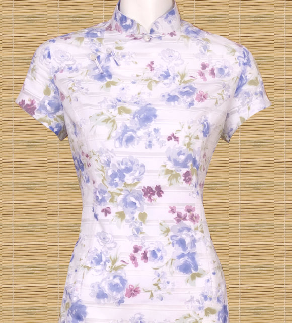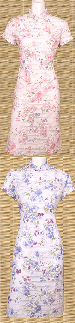 These Qipao or Cheongsam feature a romantic flower pattern on cotton. Form-fitted with knot button closures across the chest. Pretty enough for a special occassion, comfortable enough for an afternoon of errands.
