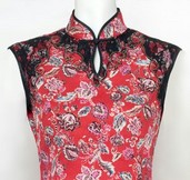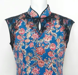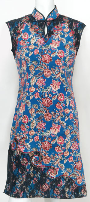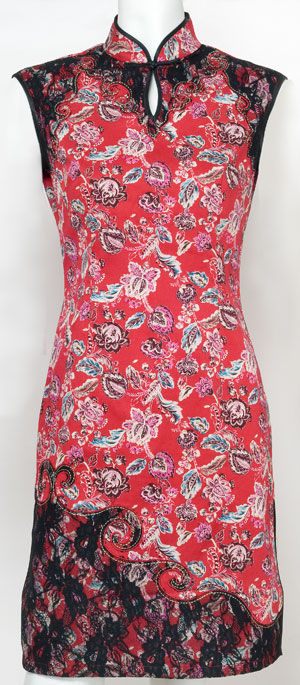 This enchanting Mandarin styled dress is designed with a lovely flower pattern on cotton. A delicate black lace decorates the collar and bottom of the dress. Great for everyday wear or for any special occasions. Please note that the sizes are American sizes.