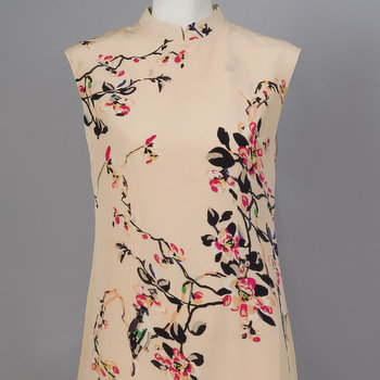 Chic and stylish, this gorgeous Mandarin Dress, or qiapo is the definition of elegance. It is form fitting and made of 100% silk. This dress has the traditional mandarin collar and a zipper in back for easy dressing. Designed with flower blossoms, it is a vision of springtime. It is simple enough to be worn causally, on a date or to work but exquisite enough to be worn to weddings or any fancy occasions. A must-have for all ladies who enjoys comfort and simplicity.
