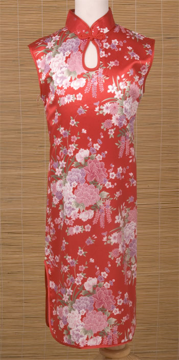 Your little girl will look as pretty as a garden bouquet in this enchanting Qi Pao dress. The silk dress is decorated with delicate seasonal flowers of peonies, roses, lilies, making it perfect for summer parties. Sleeveless, with a Mandarin collar and traditional frog closure and a key hole opening. Choose from three distinctive designs and colors. Matching pajamas and robes are available.