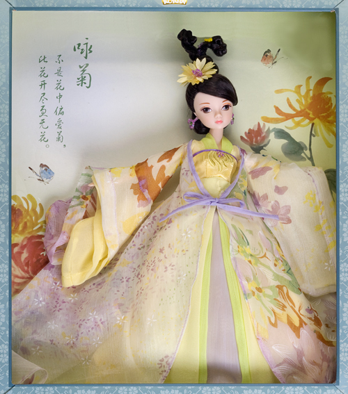 中国娃娃可儿首推经典挂画系列:特选取国画四君子中的竹、菊、梅及经典绘画元素荷作为创意元素,通过精湛的服饰、化妆工艺,演绎出独具一格的东方神韵;另采用创新的可悬挂式包装方式可如壁画般悬挂于墙面,赏心悦目。适合时尚收藏、高端礼赠。