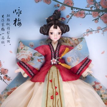中国娃娃可儿首推经典挂画系列:特选取国画四君子中的竹、菊、梅及经典绘画元素荷作为创意元素,通过精湛的服饰、化妆工艺,演绎出独具一格的东方神韵;另采用创新的可悬挂式包装方式可如壁画般悬挂于墙面,赏心悦目。适合时尚收藏、高端礼赠。