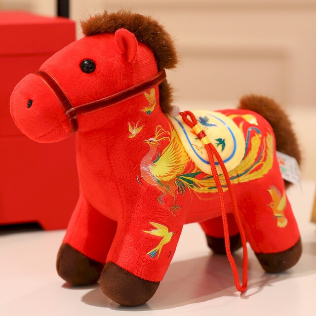 Celebrate the Year of the Horse with your own plush friend. A soft horse plush toy with an attached string for hanging. Suitable for home, classroom, or decorative use. The toy can be displayed or hung on bags, doors, or other areas as a simple decorative item.