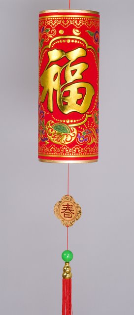 Firecracker wall hangings are a traditional Chinese New Year decoration. Firecrackers are used to scare off evil spirits and misfortune. This firecracker has a loop to hang at the top and finished with a tassel on the bottom. The firecracker is decorated with the Chinese characters "Fu" for "Good Luck". Add this large decoration to your New Years collection and hang it year after year to brighten your home and spirits for the New Year!