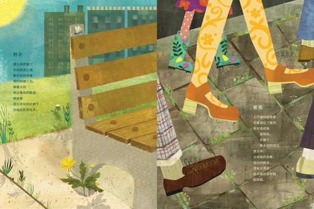作者巧妙地将城市生活中被忽视的28种野生动植物的生活习性融入28首韵律诗中,让这本书成为了孩子探索家门口大自然的科普指南。老鼠筑巢,鸽子择偶、红翅黒鹂保卫家园、蚂蚁在人行道上打架、榆树生长……城市中被忽视的野生动植物的特征及生长、繁殖等趣事儿,都通过色彩丰富的数字拼贴画,以令人惊叹的想象力跃然纸面上。这本书也同时也巧妙地提醒孩子从小关心和爱护我们生活的环境,爱护身边角角落落的动植物