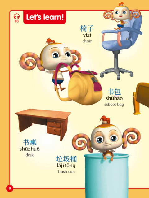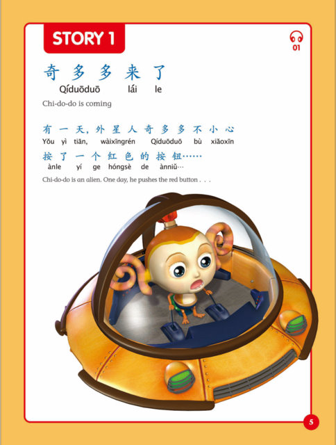 Space alien Chi-do-do accidentally landed on Earth and befriended Anan and his family and Ralph the Electronic Dog. In the colorful world of humans, join Chi-do-do on an exciting journey of Chinese learning. Included in this learning material is a complete collection of eight fascinating story settings, eighty practical vocabularies and eight general sentence patterns that are supplemented with interactive CDs and audio CDs, making the parent-child Chinese learning experience easy and interesting. Get workbook and teacher's guide too. Age: 5 to 12
