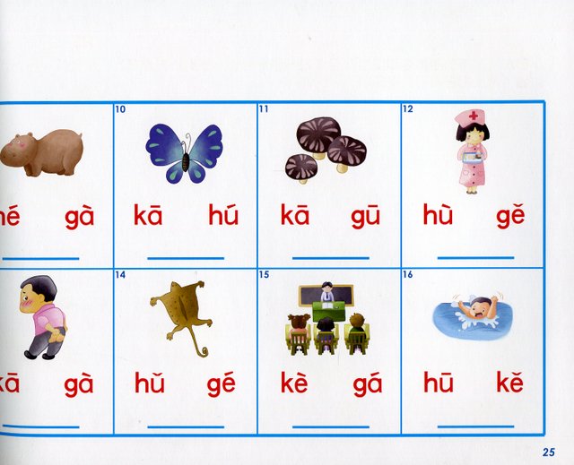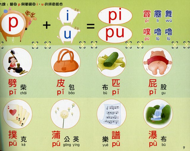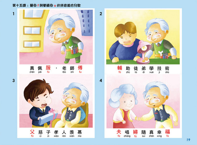 Elementary Pinyin (first and second stages) consists of basic consonants and vowels. The first phase includes four tones, recognitions of six vowels, 21 consonants, 116 common vocabulary, 27 songs and 8 after-school practice. The second phase includes 14 two-letter suffix of vowels, 12 three-letter suffix, 4 four-letter suffix, 134 common vocabulary, 30 songs and 9 after-school practice. Common vocabularies are what we learn and use in everyday life. With large red font and pinyin, as well as colorful illustrations help your child engage in learning. Lively rhyming songs, let your child learn to singe and read aloud. Exercise are designed specifically for children to practice their listening skills to consolidate what they have learned.