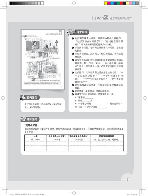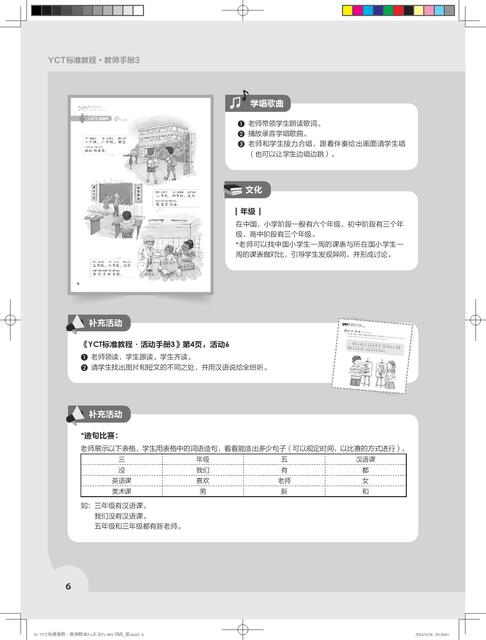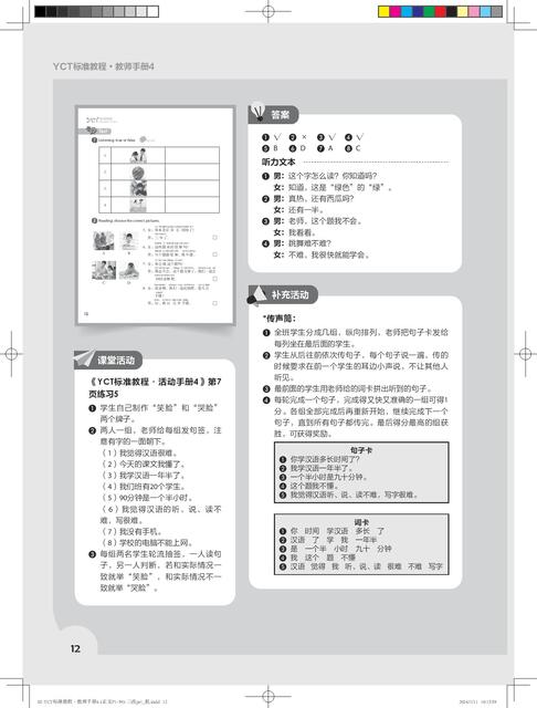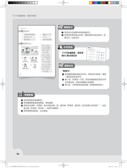 《YCT标准教程·教师指南》共6册,对应《YCT标准教程》1—6册。本书是对应教材第1册的教师参考书,共11课,对应教程的热身、生词、课文、活动、练习、测试等版块,提供了常用的教学方法、教学目标、教学步骤、小测试、参考答案、教具等,为教材使用者提供了备课方案和素材。为了方便教师使用,书中还提供了补充活动,并附有各种活动页,教师可以直接复印使用。