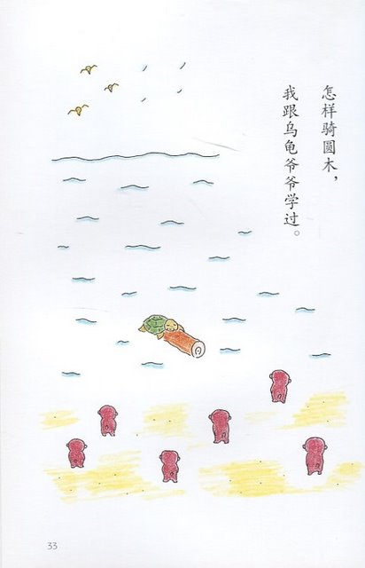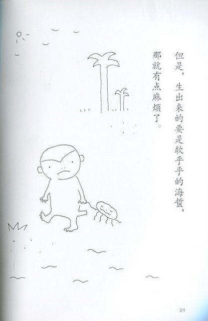 我在小岛上的生活很开心,因为每天都跟大家在一起。一天,我被一只螃蟹钳住了。呀!我会不会变成螃蟹呢?爷爷给我讲了爷爷和爷爷的爷爷的故事……
