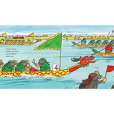 在端午节这天,他们要干一件什么大事儿?要包什么口味的粽子?为什么香喷喷的粽子煮好了却不能马上吃?故事悬念重重,惊喜不断,吊足小读者胃口。一大早,七只鼹鼠兵分两路,三只去菜场买肉买米,四只去河边采艾叶,忙得不亦乐乎。粽子包好后,他们抬着筐、拎着篮,一齐朝同一个方向赶去……要干什么呢?直到翻开最后的长拉页,赛龙舟的大画面震撼呈现,把故事推向更高的终点。粽子不仅好吃,更是饱含着祝福、惦念、感恩等美好的情感。通过制作美食的过程,可以帮助孩子了解中国丰富的传统民俗,也是对yx传统文化的一种美好传承。