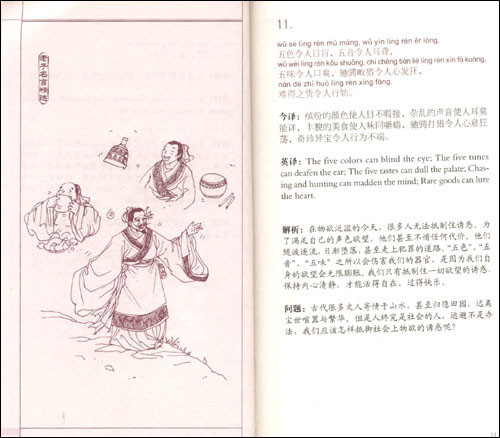 《孔子学院适用教材·文化读本系列》的使用对象为国外汉语初学者,总体思路是选取孔子、孟子、老子、庄子等古代思想家、教育家的名言以及中国成语故事、神话故事、寓言故事、历史人物故事、唐诗名句、中华箴言等,内容由原文、拼音、今译、英译、解析、问题、必要的注释及插图等几部分组成。 详细内容请参阅每本书的中文简介.