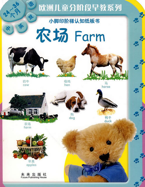 This set of nine books divided into three age groups, 12 - 18 month, 18 - 24 month and 2 - 3 years old. Each level covers three topics, Words, Animals and Farm. Combined with colorful photos and simple text, young children will learn basic vocabularies and English. In addition, the related questions on each pages will consolidate children's knowledge and make their reading full of fun!