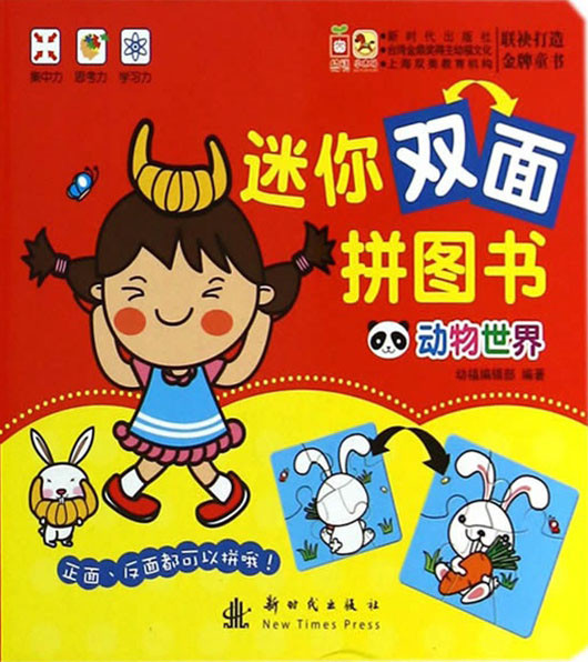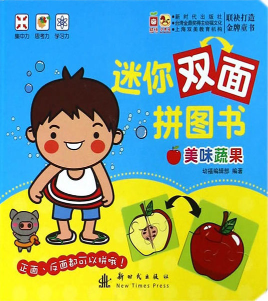 《迷你双面拼图书》是一套适合幼儿使用的镶嵌式拼图书,摒弃了传统拼图单面的单一玩法,让拼图以书本的形式呈现,正反两面内容相关联,开启新的宝宝拼图模式。在翻动双面拼图书时,这个年龄段的幼儿通过手部抓握、翻动、拼接拼图块,训练了观察力、组合力、手眼协调力。它结合了认知、拼图、猜谜三大功能。通过生动活泼的问答游戏,让孩子认知动物的特点,再通过双面拼图游戏进一步全面地了解动物的生活习性和各种果书认知。每册拼图设计有五个场景,认知各种动物、果蔬菜及相应的拼音、汉字、英文单词;拼图为正反印刷,装置拼图的页面印有拼图答案,一套四块,一册五套,大小适中,便于宝宝小手抓握拼拆。
