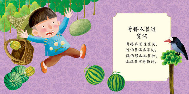 《奶奶的童谣》系列,是低年龄段幼儿学习母语及亲子阅读的圆角纸板玩具书。这套书收集了中国传统民间儿童歌谣六十余首。按照童谣类型分为,摇篮曲、绕口令、谜语、动物、数字、四季等6册。选篇涉及一般生活情景、民俗节庆、自然现象、鱼虫鸟兽、花草树木、色彩数字等等,内容生动有趣,而且题材包罗万象,满足幼儿好奇的心理。童谣语言活泼,富于音韵,朗朗上口。