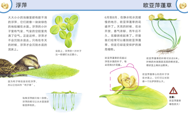 《池塘与河流》进入丰富多样的池塘与河流,一起发现这里生活着的24种生物,有植物、鸟类、啮齿动物、昆虫、两栖、爬行以及鱼类和软体动物等。
