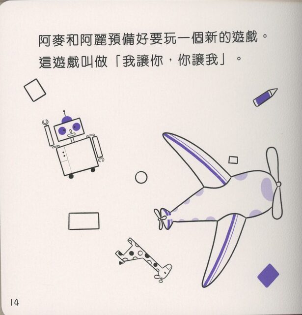 《我讓你,你讓我》與媽媽一起散步的小旅程中,小女孩收穫了很多感謝。她也能學會感謝別人嗎?這是一個關於感恩 的故事。感恩包含感激和感謝的感覺。感恩的對象可以是人、動物、大自然,或是事情。學會感恩,孩子會更易感到快樂和滿足,性格也會更樂觀積極。